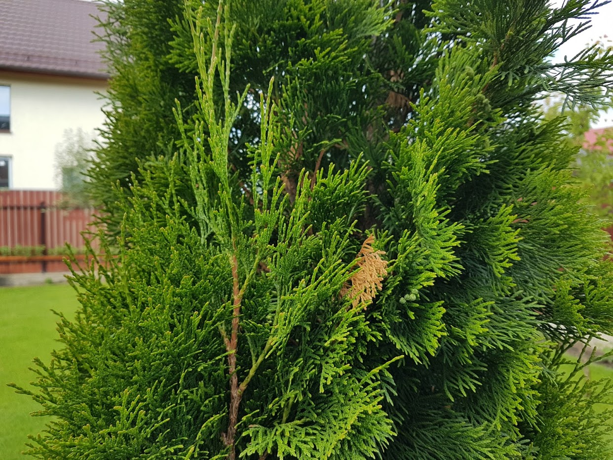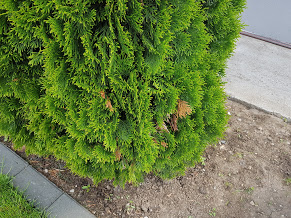 Tuia avea niște peste ramuri uscate. Nu multe, după cum se vede în pozele de mai jos, dar am zis că-i cazul să văd ce-i cu ele. Am un vecin priceput în îngrijirea grădinilor și el mi-a recomandat niște substanțe. Ideea este că nu am găsit nimic din ceea ce mi-a recomandat și am primit niște produse înlocuitoare. Că-s mai bune sau nu… nu știu. O să vedem.