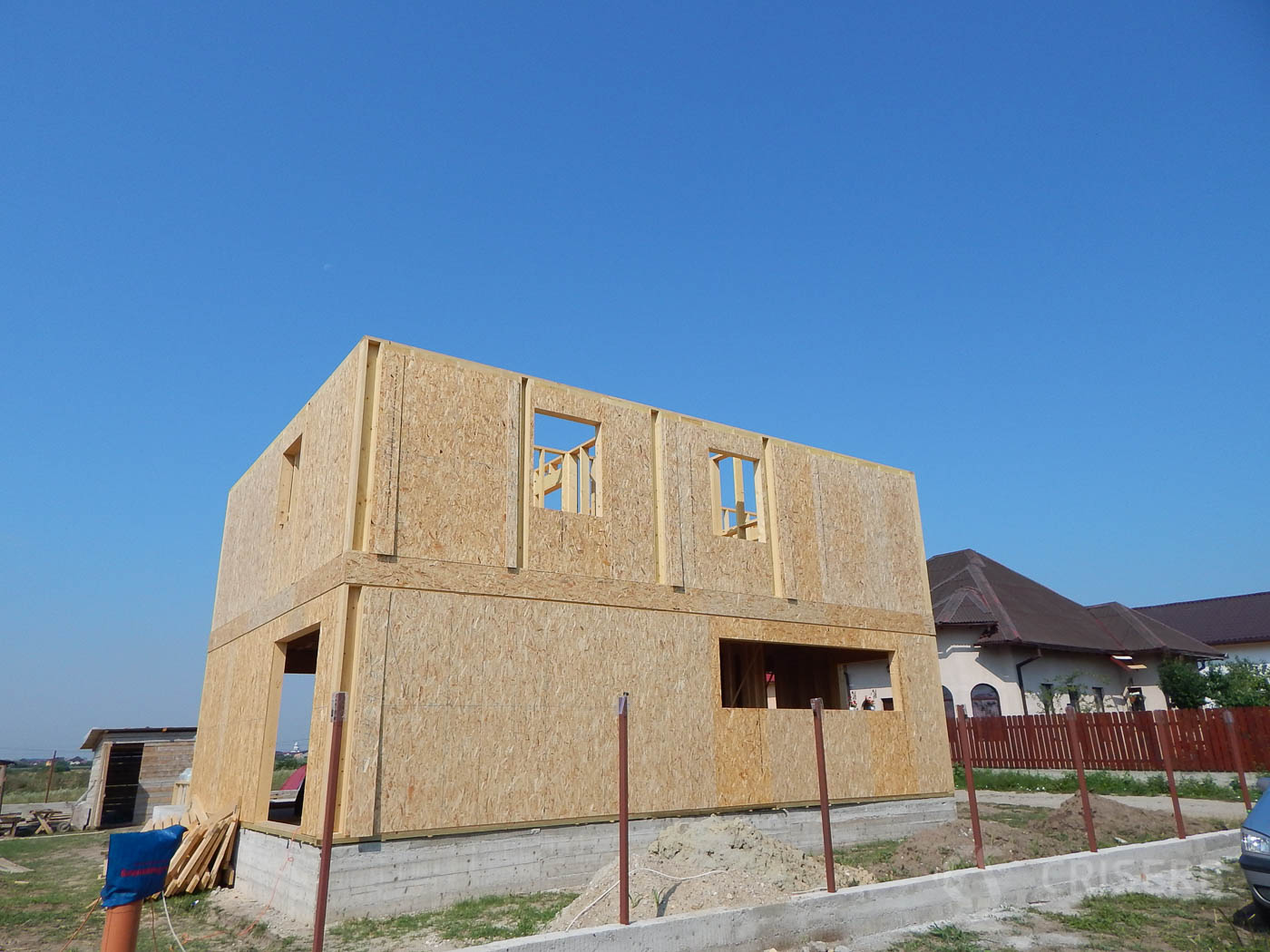 placa de osb din cate stiu eu (asa am vazut pe la toate contructiile din strainatate) se pune de la jumatatea peretelui de jos pana la jumatatea peretelui de la etaj ca sa iti ridigizeze casa