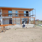 Bravo, casa arata foarte bine, daca nu tii cont de mica problema cu cei de la tabla, care sunt convins ca se va remedia rapid. Imi place ca, fata de proiectul inițial al casei, ai renunțat la balcoane in favoarea a mai mult spațiu interior. Terasa cu pergola e de efect, iar lambriul da o nota calda casei. Asteptam cu interes următoarele postări, mai ales ca instalațiile sunt principalul meu semn de întrebare in acest moment.