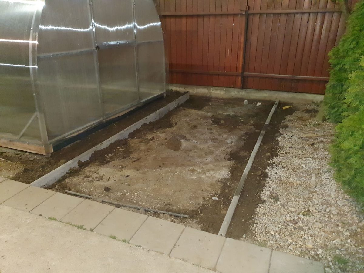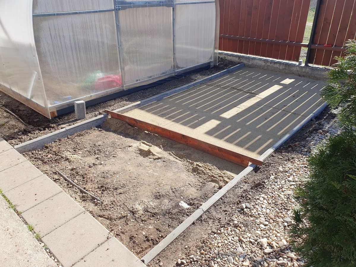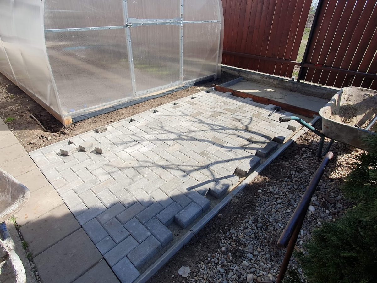 Acum vreo două săptămâni vă spuneam că am scos grădina și mi-am montat un solar. Dar cum solarul este ceva mai mic decât grădina ce-o aveam în trecut, am rămas cu un spațiu neamenajat în fața solarului și am zis să fac o mică zonă cu dale. Să-mi fie ușor și când intru în solar și probabil să pun niște ghivece mari cu flori pe acolo. Asta încă mai vedem.