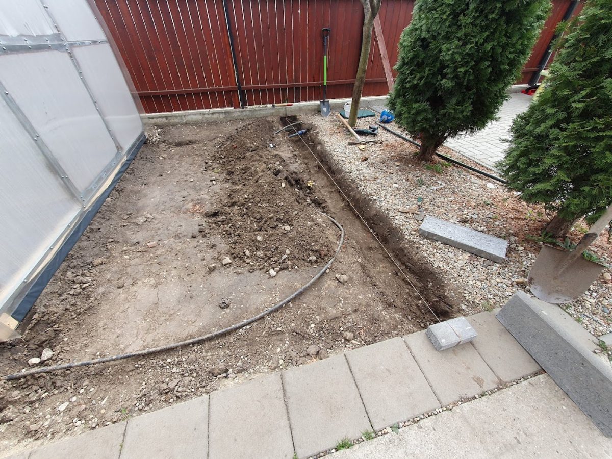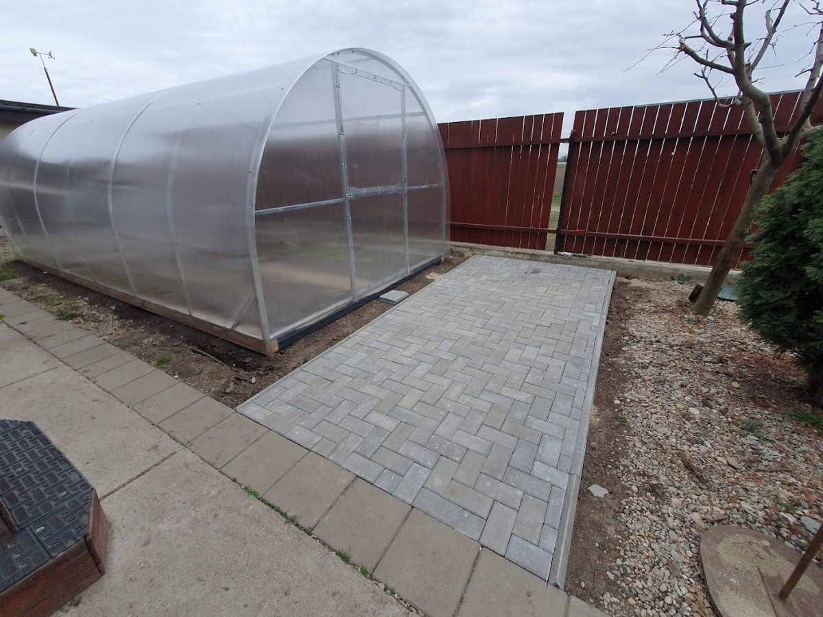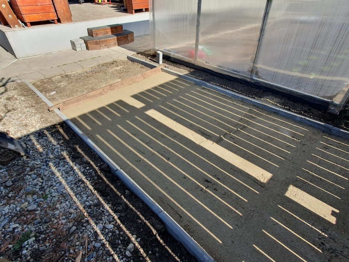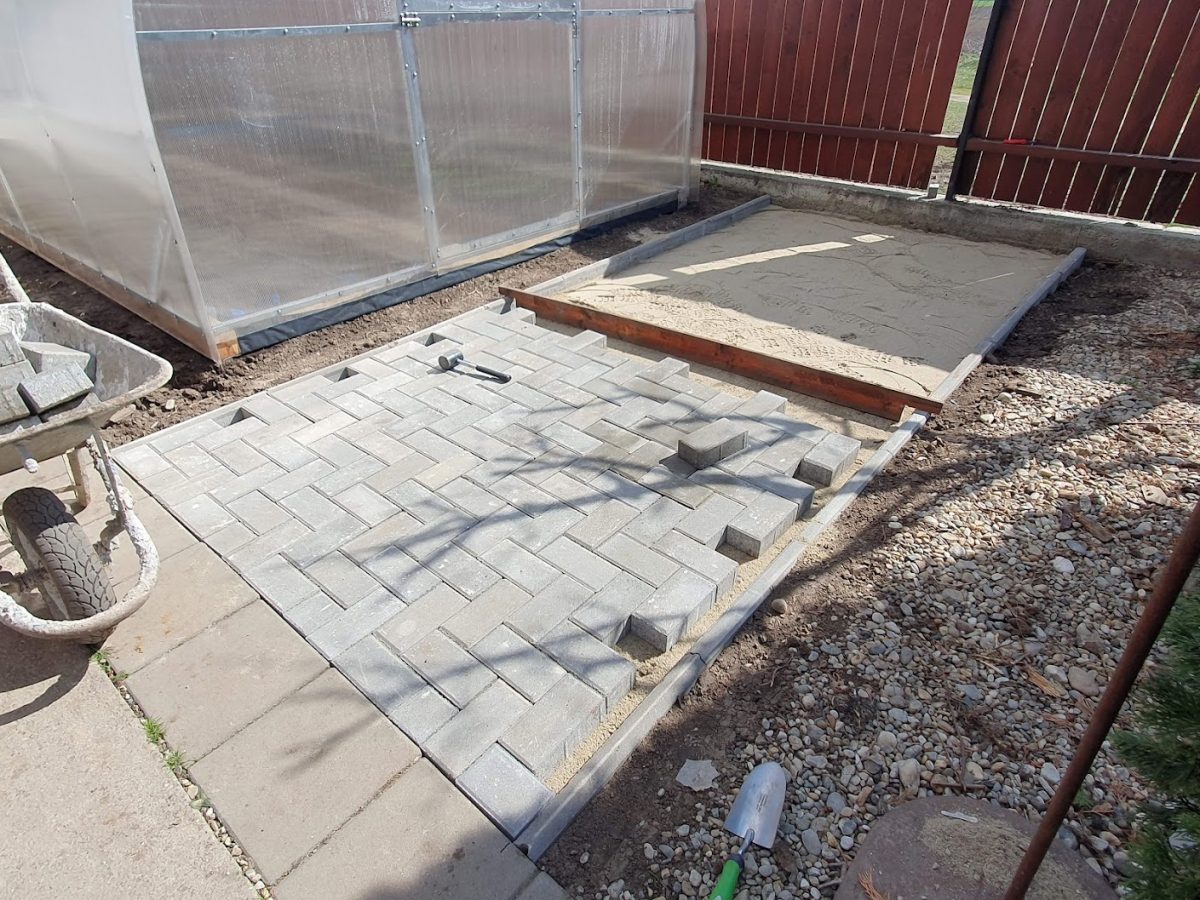 Acum vreo două săptămâni vă spuneam că am scos grădina și mi-am montat un solar. Dar cum solarul este ceva mai mic decât grădina ce-o aveam în trecut, am rămas cu un spațiu neamenajat în fața solarului și am zis să fac o mică zonă cu dale. Să-mi fie ușor și când intru în solar și probabil să pun niște ghivece mari cu flori pe acolo. Asta încă mai vedem.