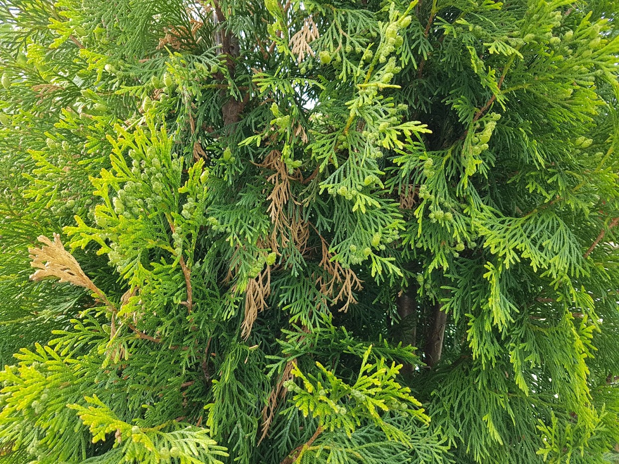 Tuia avea niște peste ramuri uscate. Nu multe, după cum se vede în pozele de mai jos, dar am zis că-i cazul să văd ce-i cu ele. Am un vecin priceput în îngrijirea grădinilor și el mi-a recomandat niște substanțe. Ideea este că nu am găsit nimic din ceea ce mi-a recomandat și am primit niște produse înlocuitoare. Că-s mai bune sau nu… nu știu. O să vedem.
