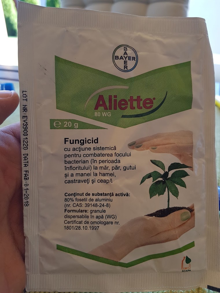 În concluzie am stropit tuia cu Aliette 80 WG și Vertimec 1,8% EC.