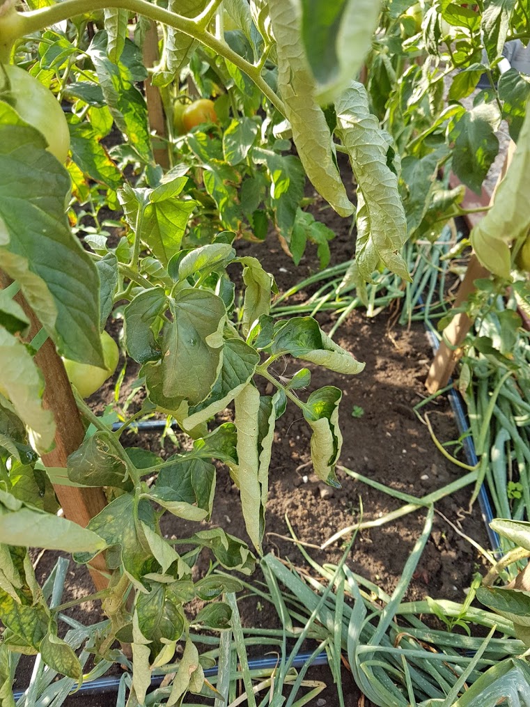 Pentru că frunzele s-au cam schimbat la culoare, au căpătat ceva pete, am pus o întrebare pe facebook, într-un grup de agricultură și am aflat că-s mânate. Am fost sfătuit să curăț toate frunzele bolnave și să stropesc cu Ortivia 250 SC.