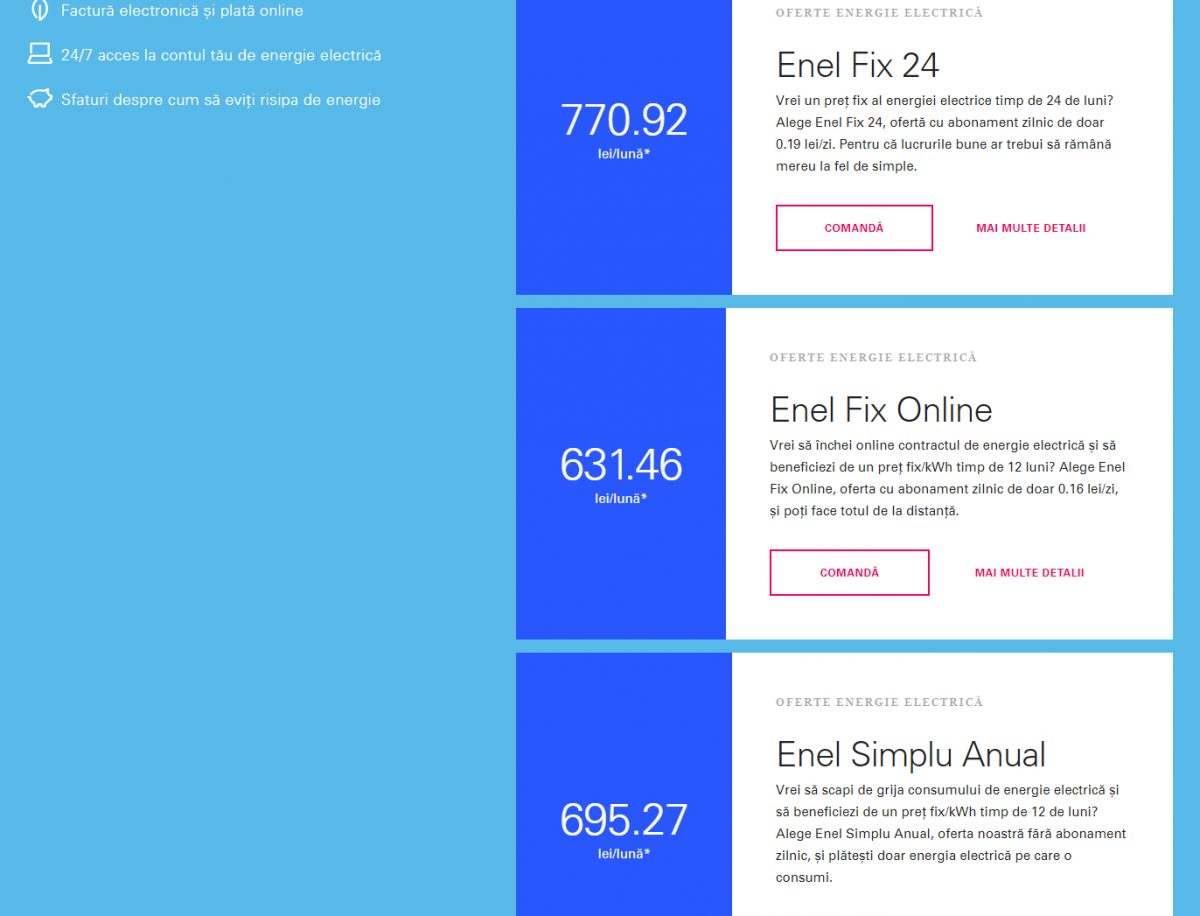 Astfel pentru Enel fix online aveam 631 lei în comparație cu 680 lei cât este factura actuală.