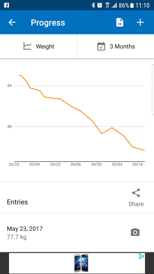 După 30 zile de la instalare am mai putin cu 2kg și am zis că aplicația e bună și că pot să o recomand.