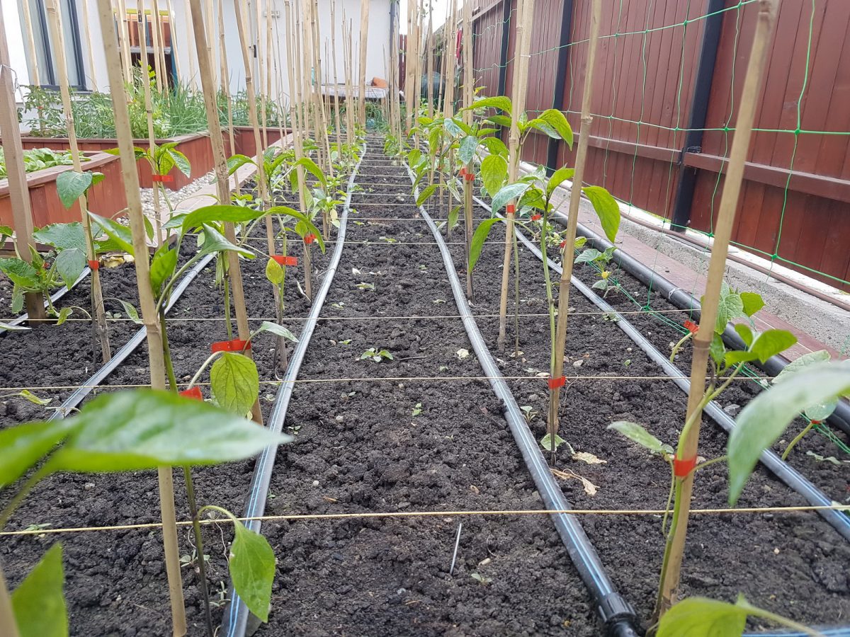O modificare majoră, față de anul anterior este că am renunțat la vinete, am pus în schimb mai mulți ardei, că ăștia se fac mai mulți și se păstrează mai bine peste iarnă, la congelator. Vinetele se făceau destul de puține, pentru cât spațiu am eu, și mai mult de 2-3 salate nu reușeam să fac, deci am renunțat.