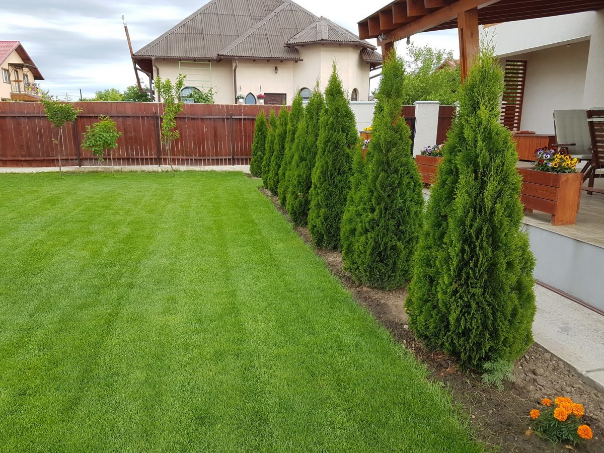 Thuja au crescut frumos, sunt de cel puțin 2 ori mai mari ca la plantare, acum 2 ani. Mulți îmi ziceau că nu o să se prindă, că am luat niște ieftinăciuni de la Leroy (19 lei bucata). Ei bine s-au prins și le merge foarte bine. Sunt mândru de ei.