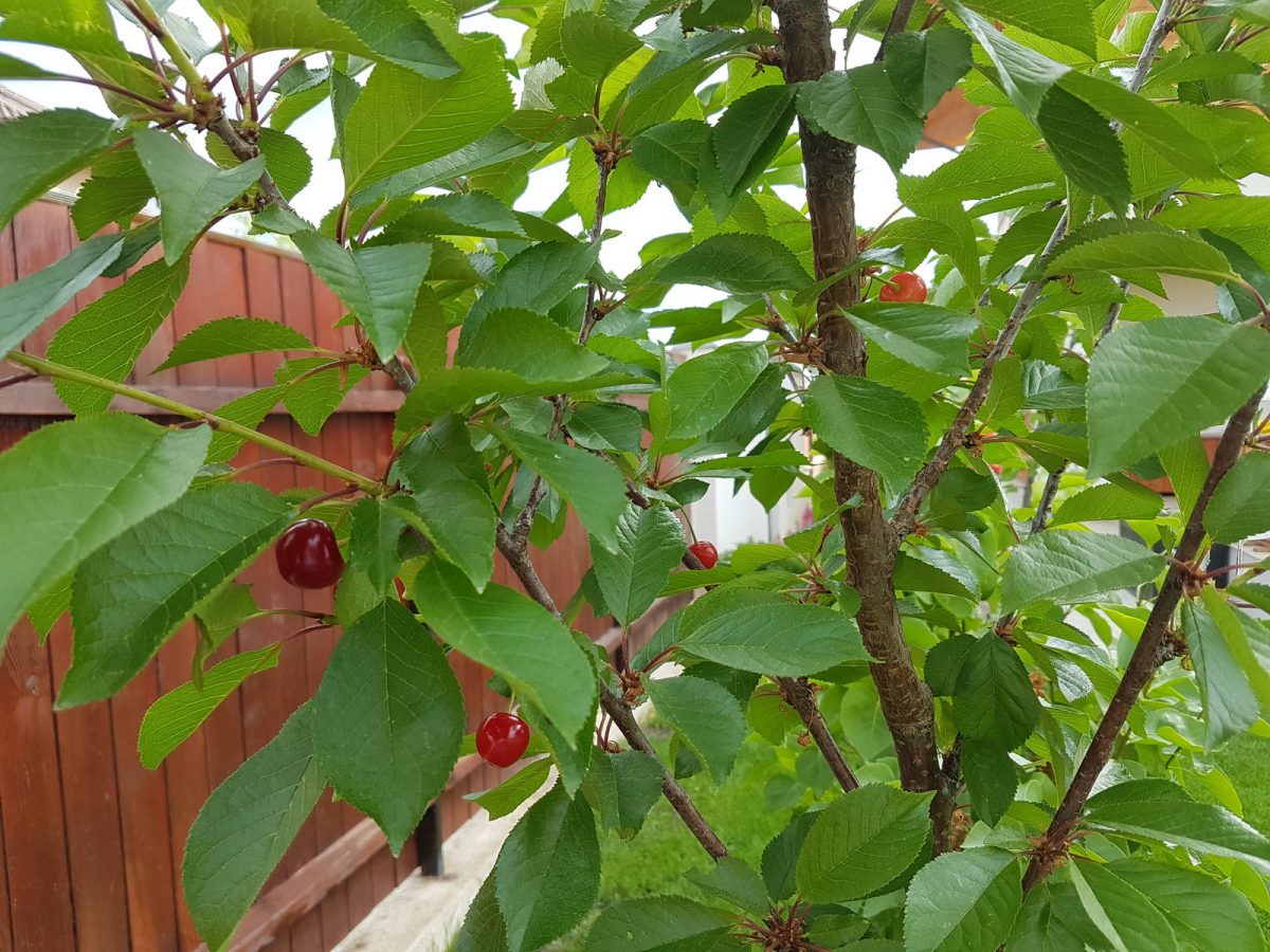 Am și câteva vișine, aproape făcute, dar nici astea nu-s multe.