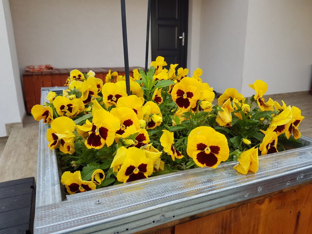 Cu toate că Danei nu prea îi plac panseluțele am cumparat o mulțime din târg să testez dacă merg. Până la urmă au început să-i placă și ei și sperăm să le meargă mai bine ca margaretelor africane pe care le-am avut anul trecut.