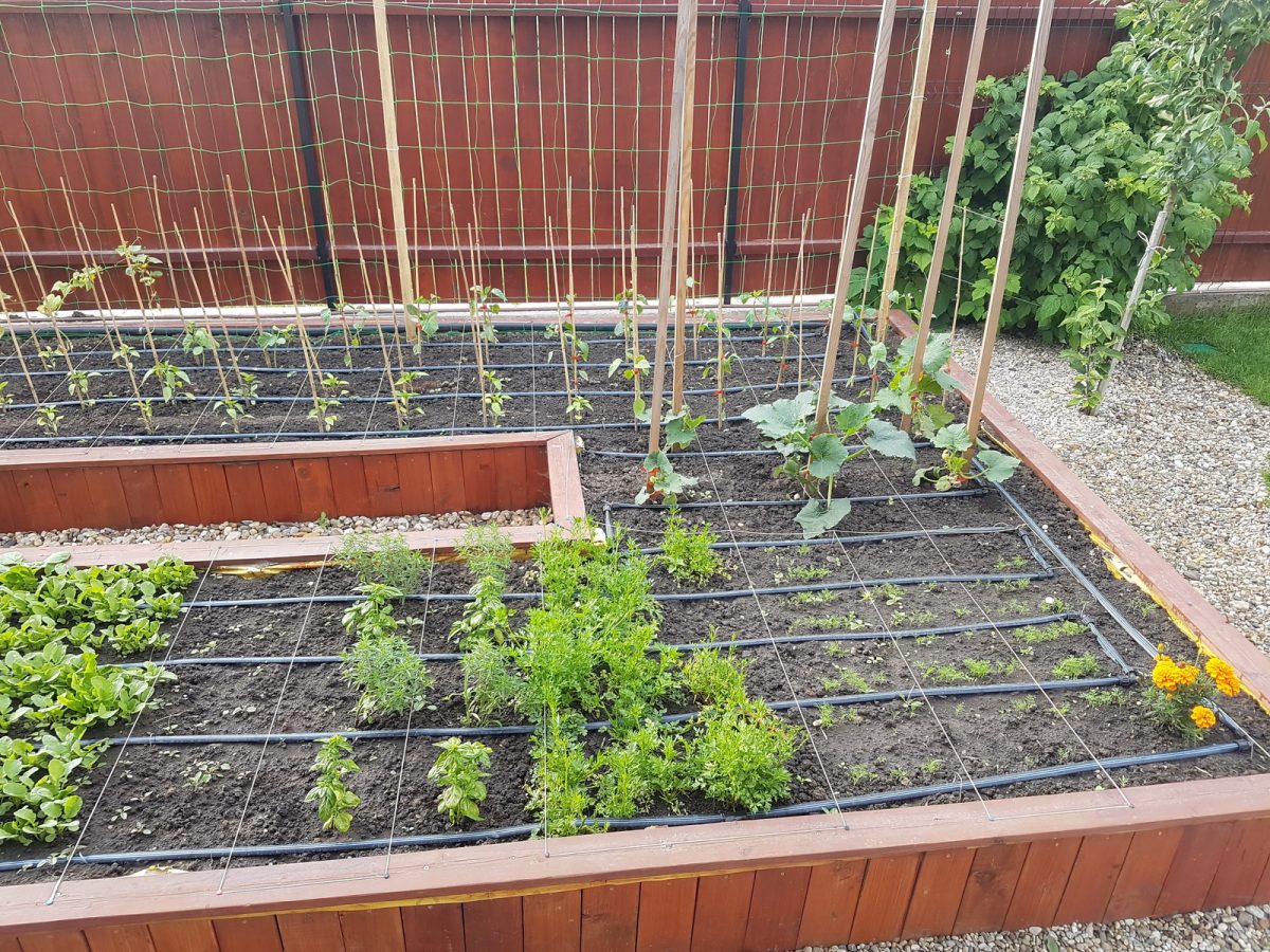 @Ariel – am pus-o pentru a împărți grădina în părți egale, pentru a putea să optimizez mai bine locul și de a planta plantele alea pe linii drepte :) Știu, sunt nebun, dar îmi plac treburile ordonate.