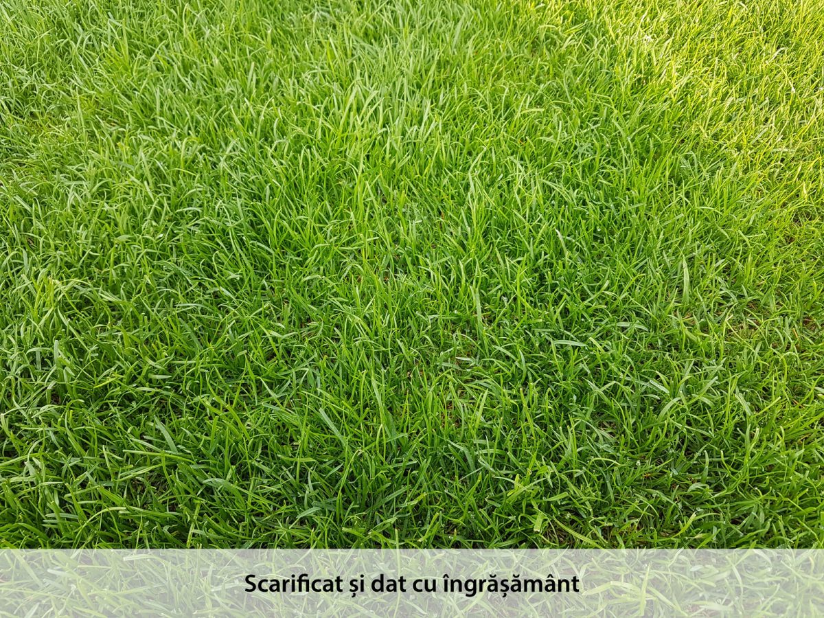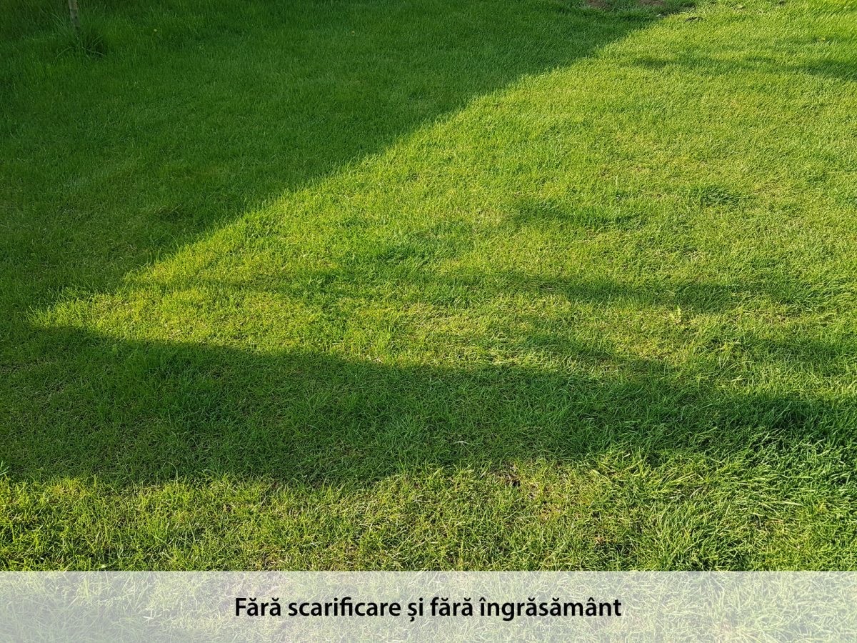 Diferența între un gazon scarificat și dat cu îngrășământ și unul nescarificat și fără îngrăsământ