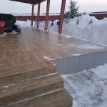 Imediat ce aleile au fost cât de cât practicabile Dana a urcat sus pe terasă să curețe undeva 70-80cm de zăpadă. Am zis că e mai bine să o dea jos, că na, terasa era făcută de mine și nu știam cât de rezistență este.