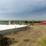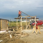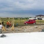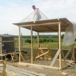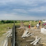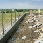 Vă spuneam ieri că astăzi ar trebui să fie gata partea cu fundația și cu stâlpii gardului. Ei bine, este gata. La 7 juma’, când am ajuns eu pe șantier, băieții terminaseră cu decofratul și construiau o mică magazie, pe care am să o folosesc pe perioada șantierului.