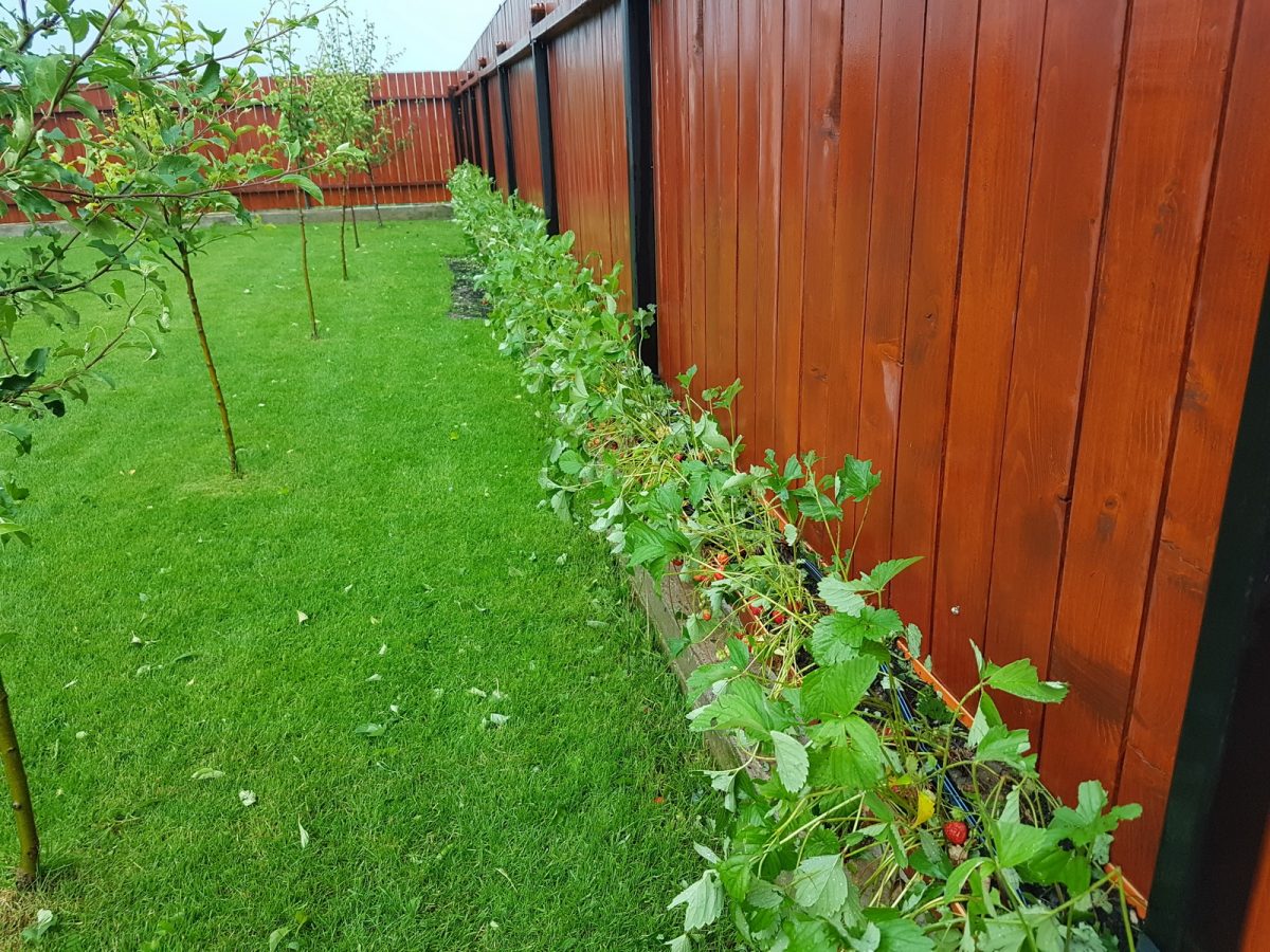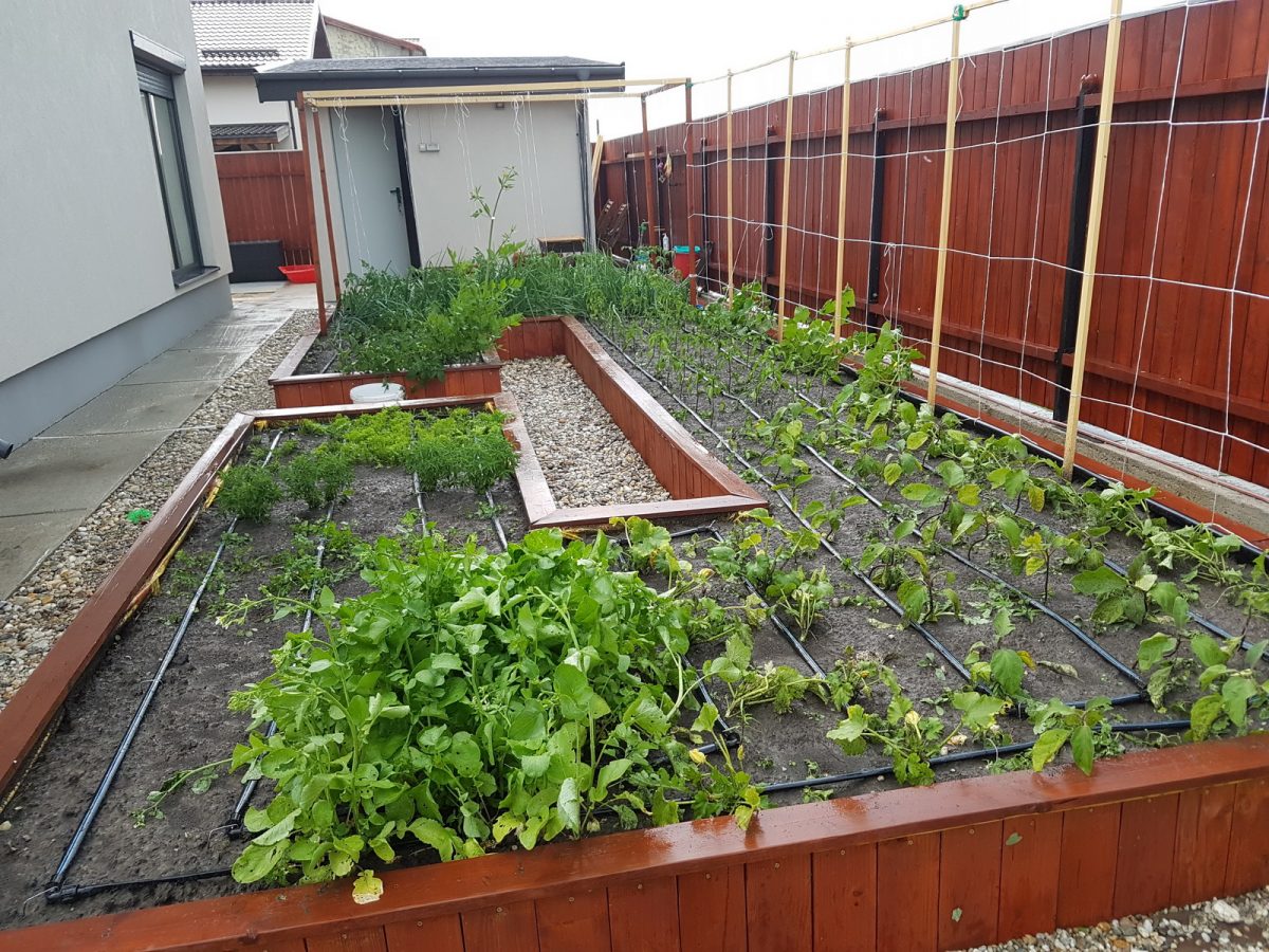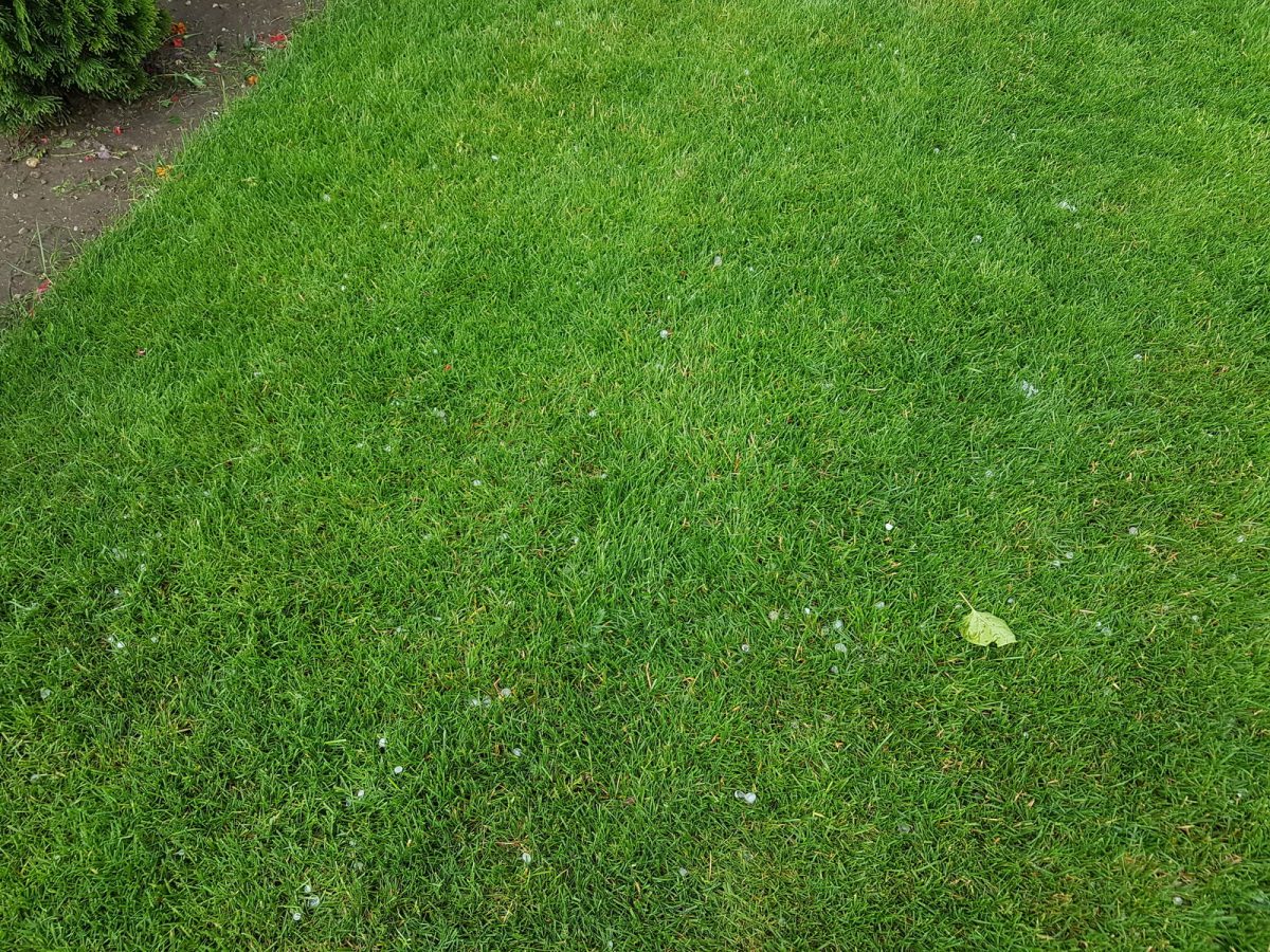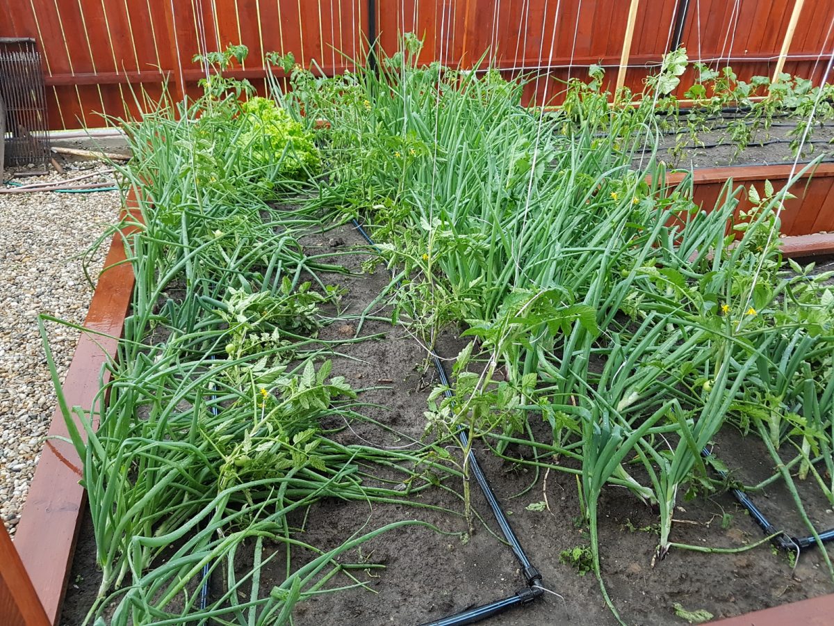 Grădina afectată și ea, dar mai puțin ca restul chestiilor. Casa a protejat grădina, grindina venind din direcția casei, spre grădină.