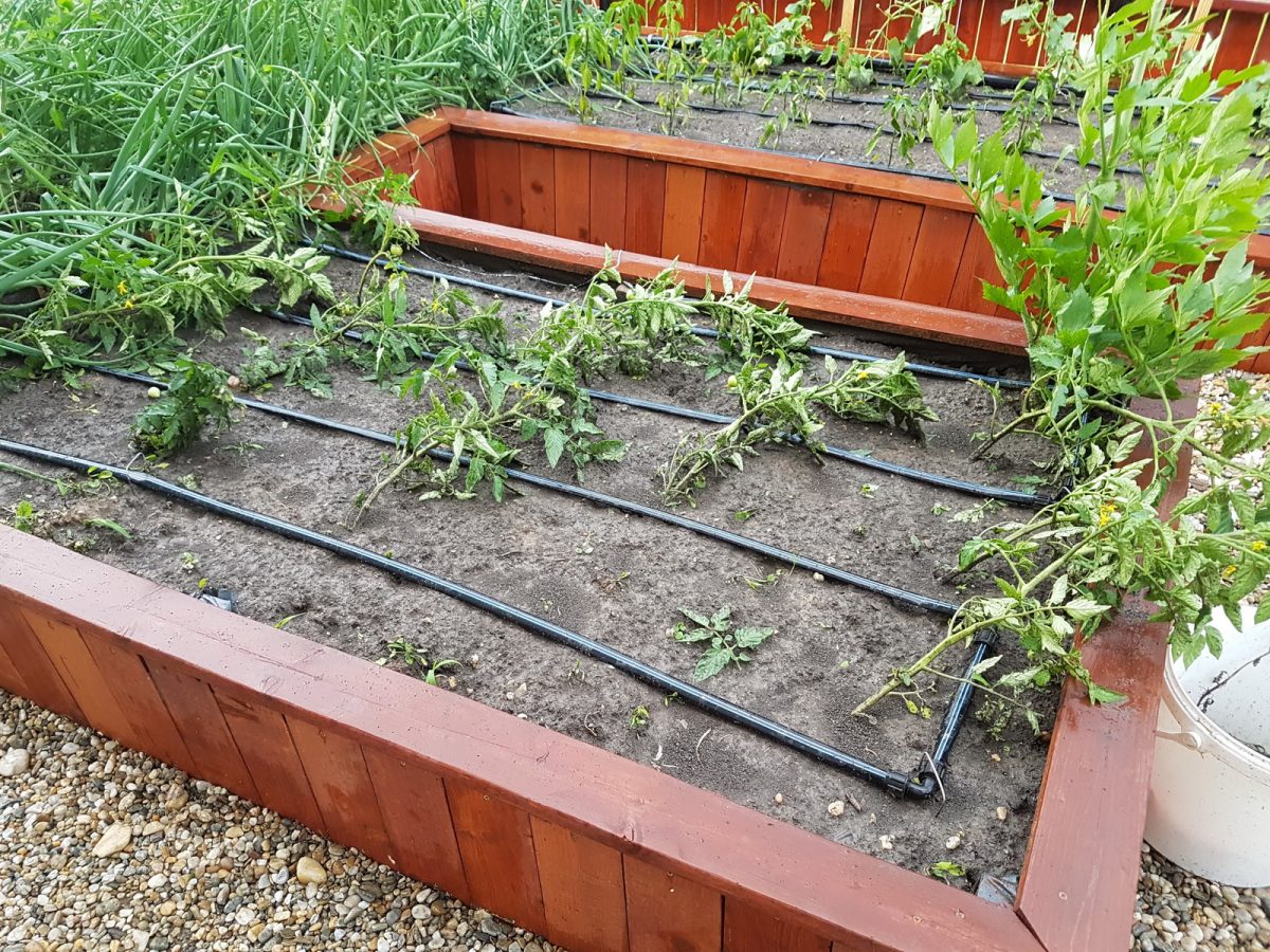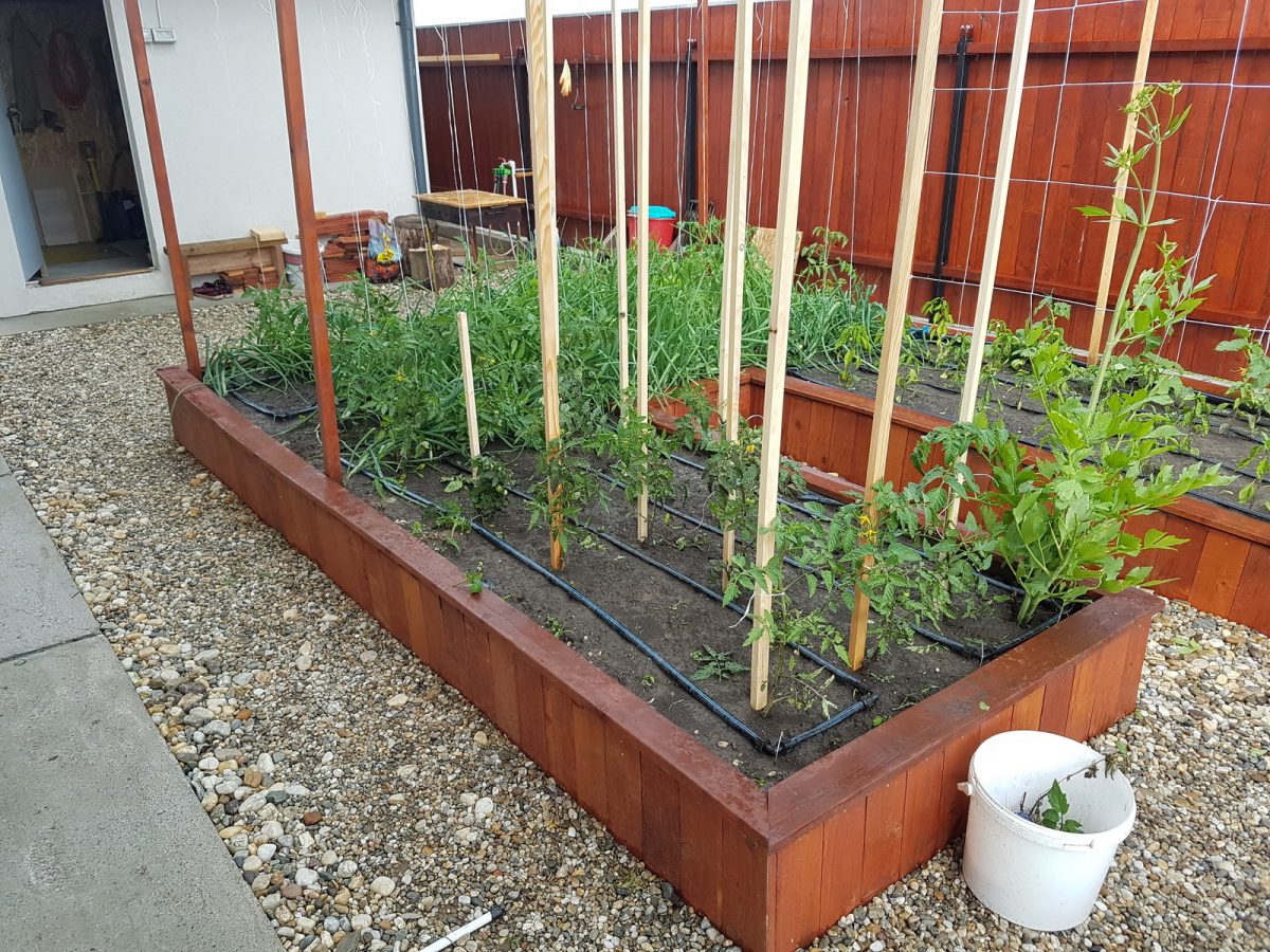 Roșiile astea au fost doborâte de tot. Vina mea că nu le-am pus niște araci. Așa este când amâni pe mâine.