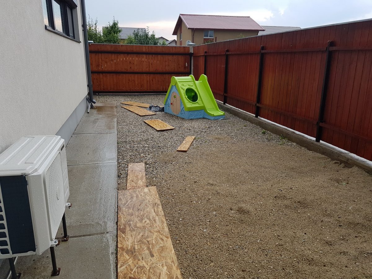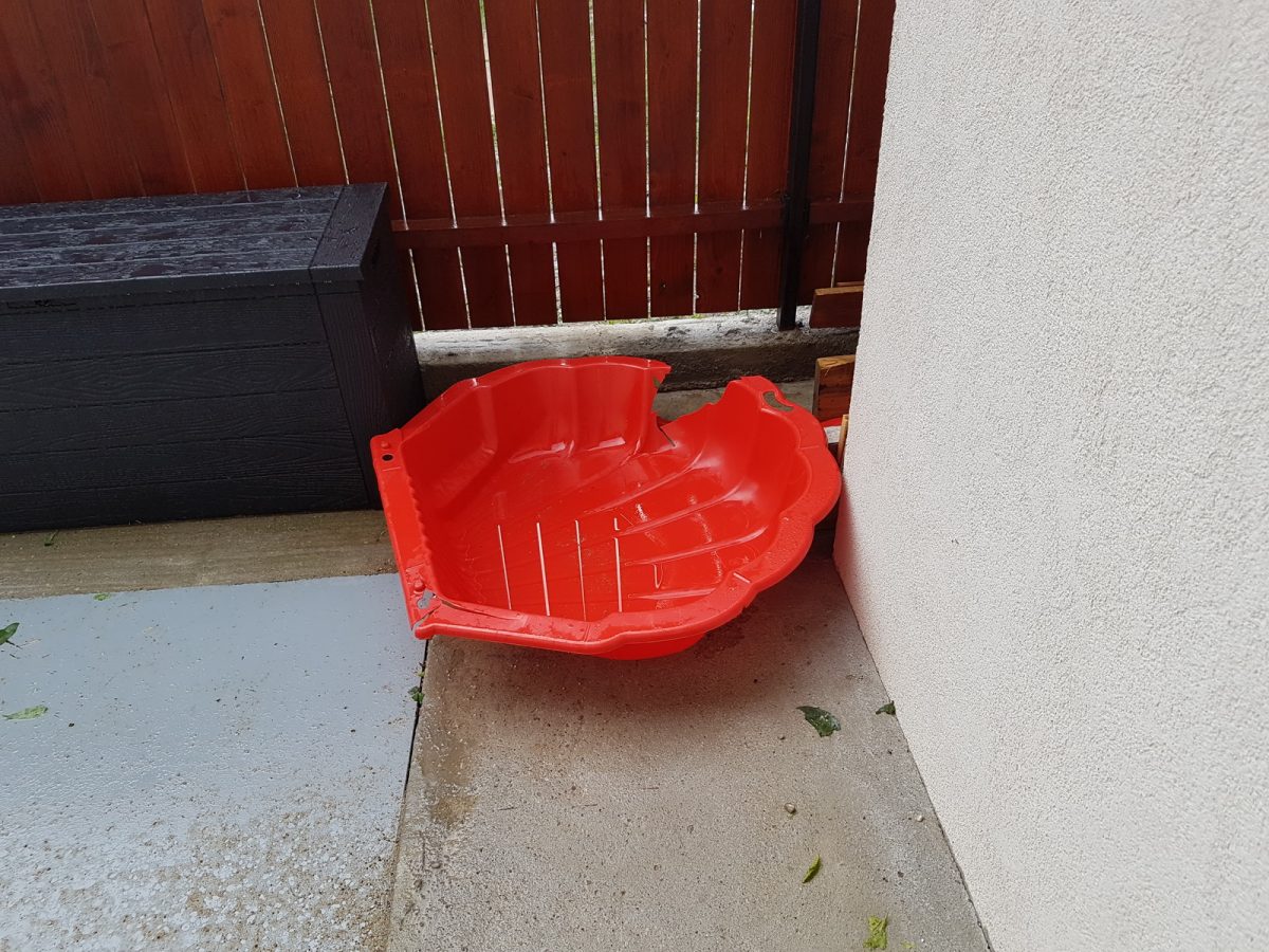 În spatele casei, niște plăci de OSB pe care le-am pus să încapă fii-miu cu cartul au zburat. Și totuși nu-ș ușoare.