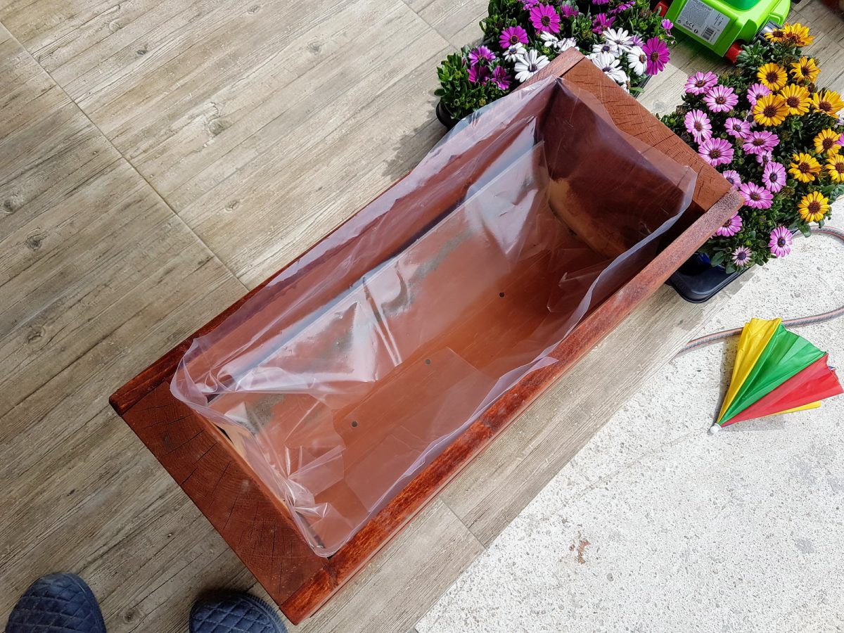 Peste am pus o folie, astfel încât pământul să nu atingă lemnul.