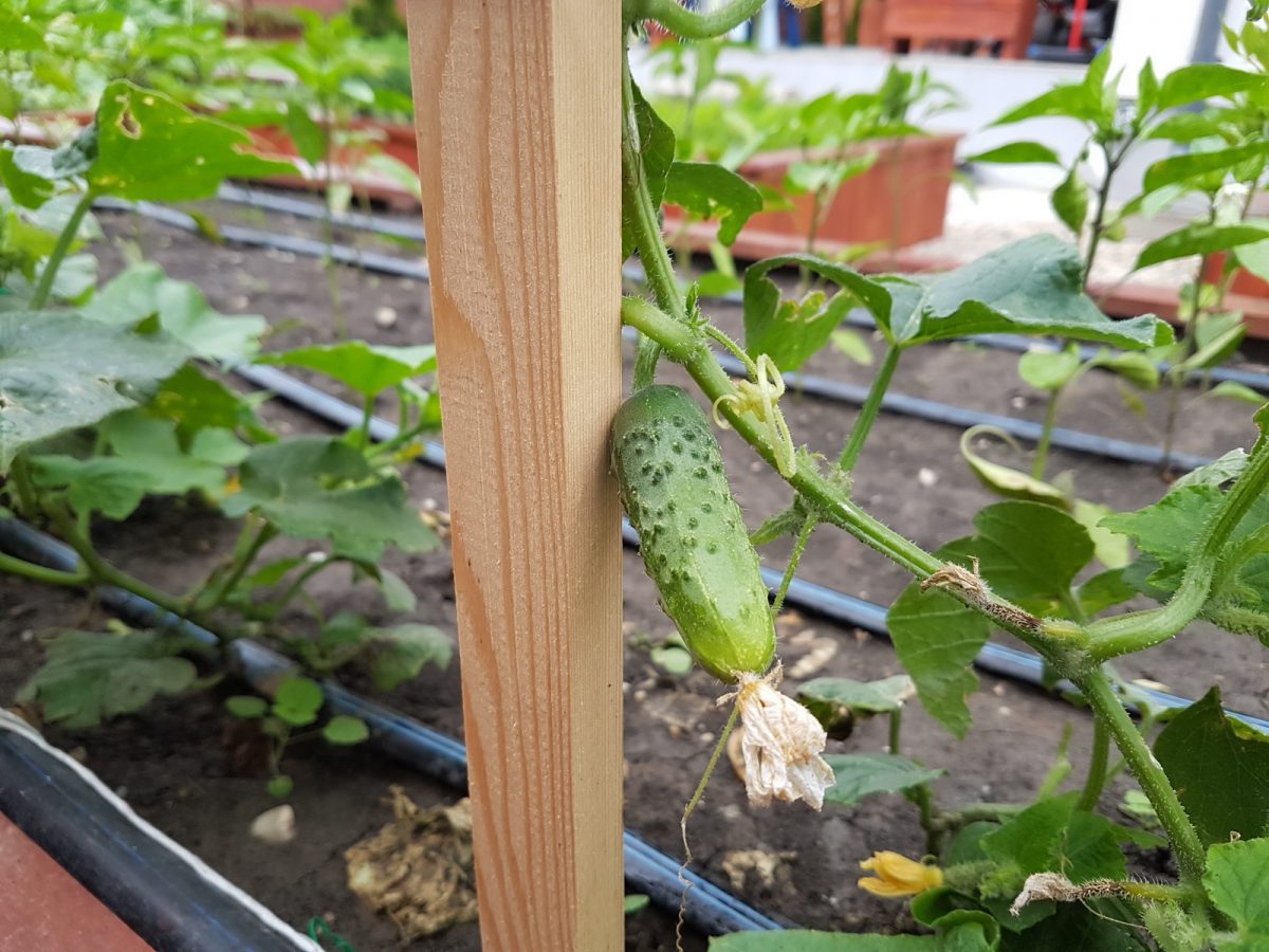Castraveți am recoltat aseară patru bucăți. Nu i-am gustat, i-am băgat în frigider și i-am lăsat plăcerea lui Alex. Că el este amator de tot ceea ce găsește prin grădină.