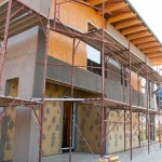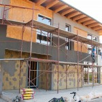 Am continuat cu vata bazaltică pe exterior, a fost pusă cam peste tot și a fost pusă și plasa, apoi dată o mână de masă de șpaclu. Cred că așa îi zice, dacă am greșit, mă corectați voi. Mă rog, un adeziv cu care a fost fixată plasa peste vată și peste care o să vină tencuiala decorativă.