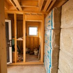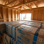 După ce a fost pusă totă vata, în zonele în care se mai vedea OSB-ul cei de la EcoKit urmează să pună vata și să realizeze un caroiaj de lemn pe care să vină pus lambriul.