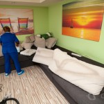 Apoi, au dat la o parte mobila mare din casă. Canapeaua (are vreo 6m), patul și au curățat și pe dedesubt. Au făcut cada de la baie lună, chiar dacă ea era curățată frecvent de femeia care ne făcea curat, acum parcă era și mai albă. Probabil și substanțele pe care le-au adus au rolul lor.