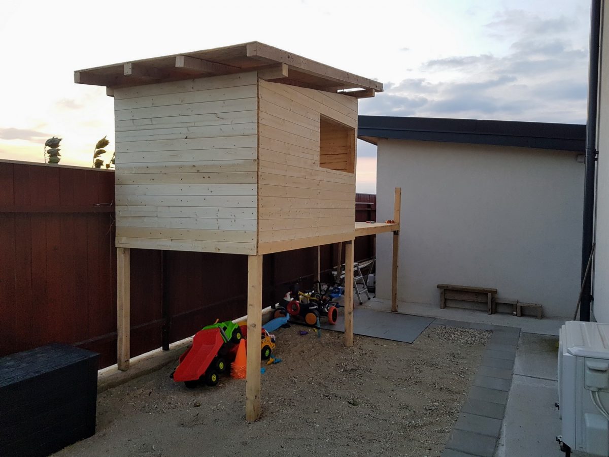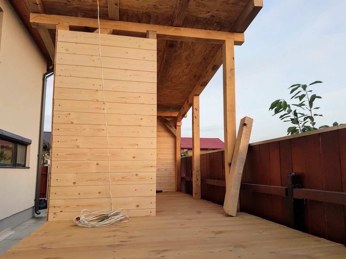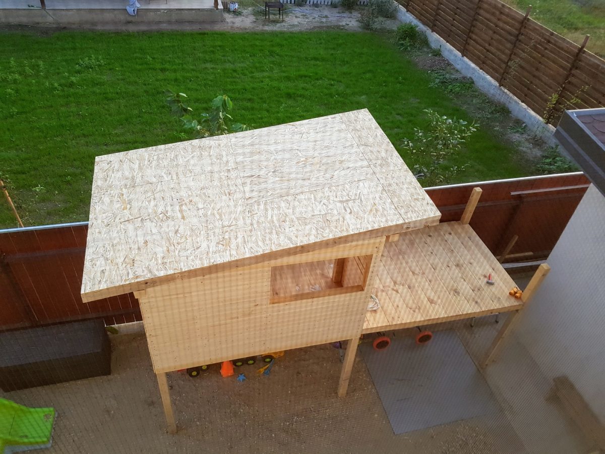 Când o să fie gata? Nu știu, însă sper ca în 2-3 zile să fie gata căsuța, apoi mai vedem și cu terasa și cu partea de dedesubt pe care vreau să o închid pe 3 laturi, să nu plouă/ningă din lateral, iar în față intenționez să pun o prelată pe care să o cobor doar când plouă și peste iarnă.