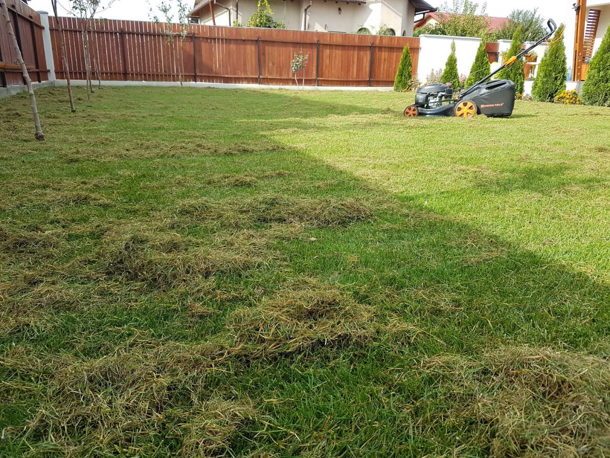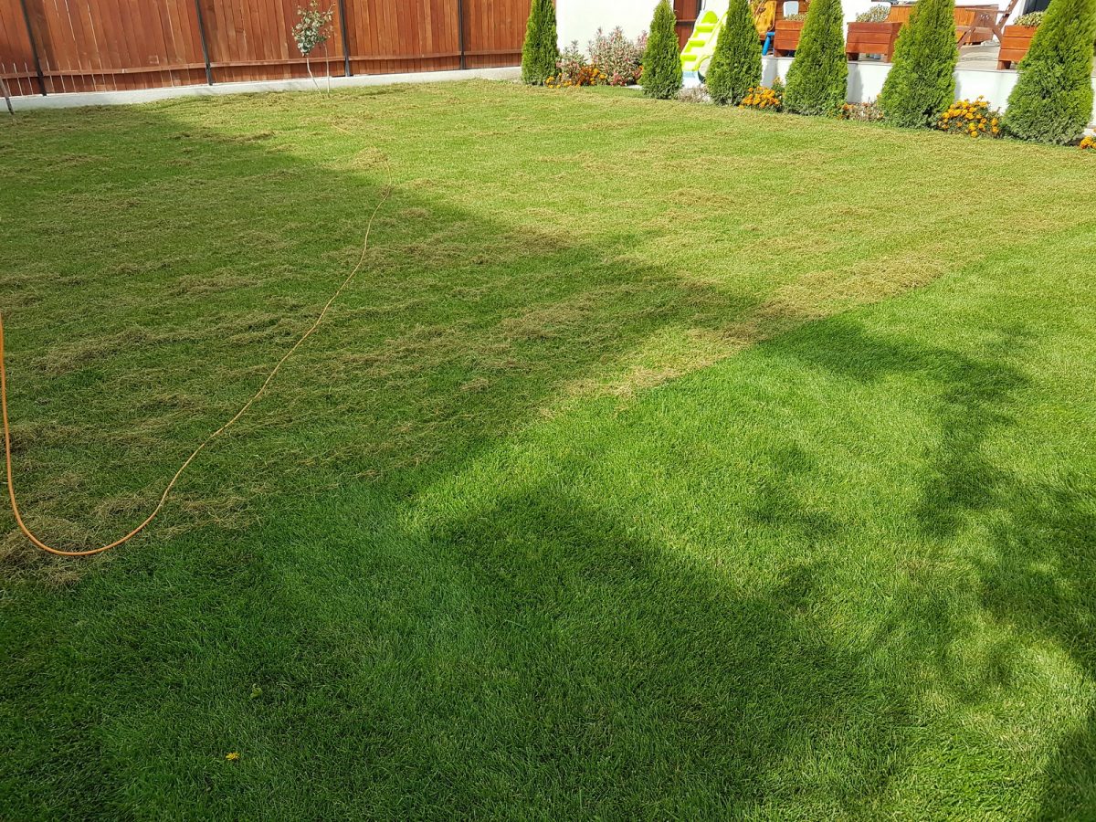 După tunderea de mai sus, am băgat mașina de scarificat și am trecut odată peste toată iarba.