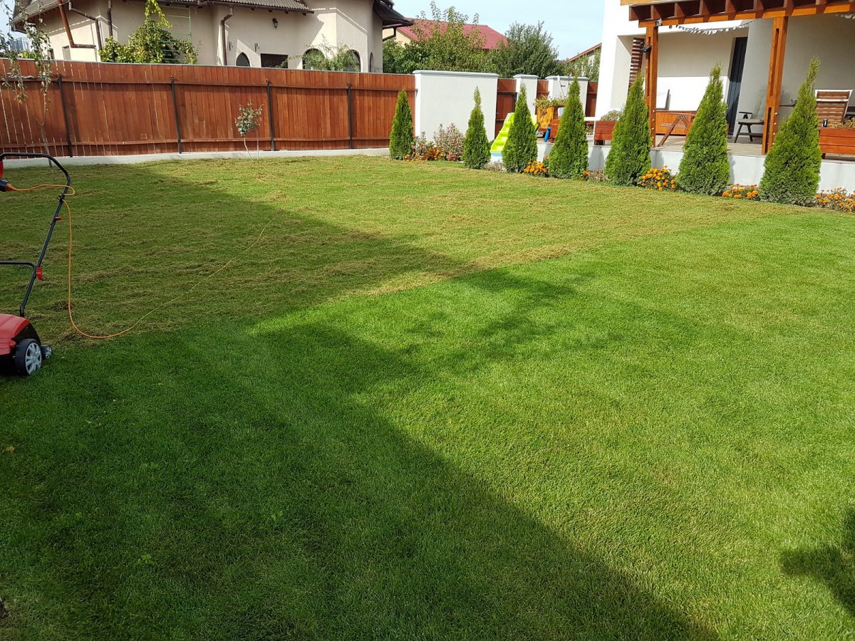 Prima dată trebuie tuns gazonul, tuns la dimensiunea la care-l tundeți de obicei. Eu așa am procedat. Ah, nu susțin că ceea ce vă zis eu este regulă, vă zic cum am procedat eu, voi puteți să mai adaptați.