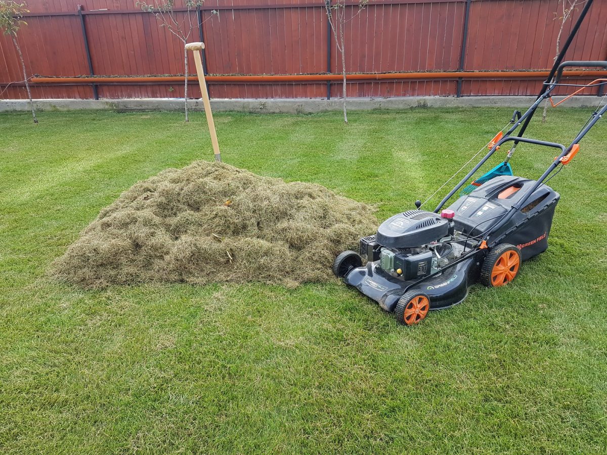 La finalul, după ce toată iarba moartă era strânsă la un loc, cam atât am avut. La o suprafață de 200mp de gazon.