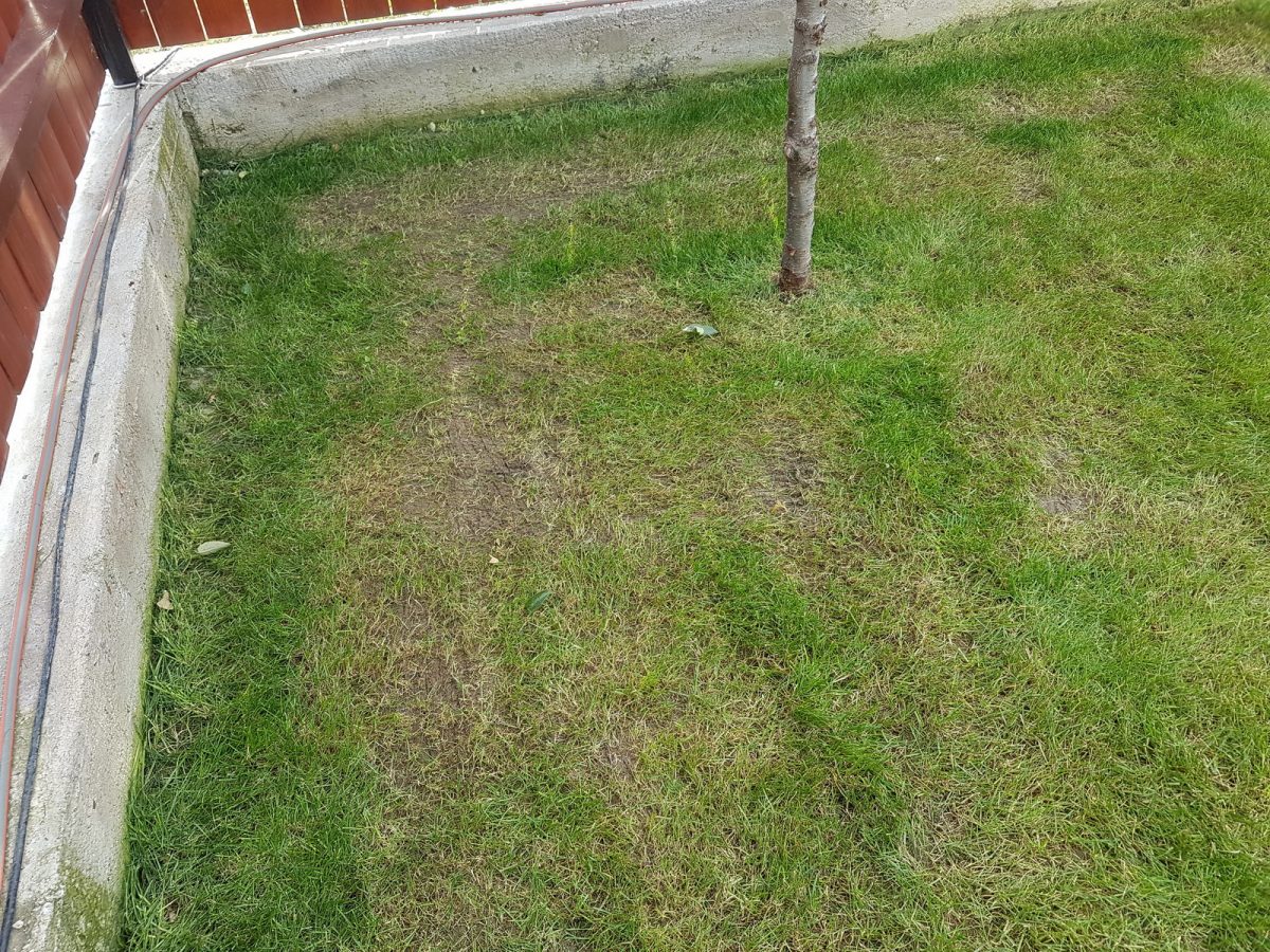 În mare arată bine, dar dacă vă uitați cu atenție în anumite zone, am intrat mai mult cu scarificatorul în pământ și na, nu arată tocmai bine, dar sunt convins că în primăvară o să crească din nou, mai verde și mai frumos.