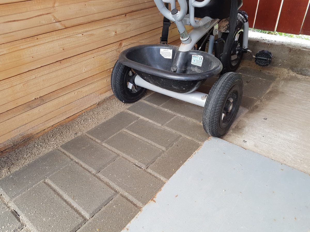 Ieri, pentru că nu-mi plăcea că în zona de parcare avea o parte cu nisip, am pus și niște pavele, așa să mă antrenez pentru o lucrare mai amplă.